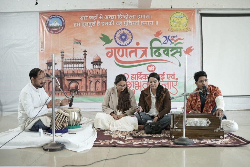 देहरादून (उत्तराखंड)-विषेश प्रतिनिधि। स्पर्श हिमालय विश्वविद्यालय एवं हिमालयीय आयुर्वेदिक मेडिकल कॉलेज के संयुक्त तत्वावधान में 77वाँ गणतंत्र दिवस समारोह विश्वविद्यालय परिसर में अत्यंत हर्षोल्लास, गरिमा और देशभक्ति के वातावरण में संपन्न हुआ। कार्यक्रम के दौरान संविधान, लोकतंत्र और राष्ट्रीय एकता के मूल मूल्यों को प्रभावशाली ढंग से रेखांकित किया गया।समारोह का शुभारंभ लेखक गाँव की निदेशक एवं स्पर्श हिमालय विश्वविद्यालय की उपाध्यक्षा विदुषी निशंक तथा प्रति-कुलपति प्रो. आर.सी. सुन्द्रियाल द्वारा ध्वजारोहण एवं राष्ट्रगान के साथ किया गया। इस अवसर पर दीप प्रज्ज्वलन कर सांस्कृतिक कार्यक्रमों का विधिवत शुभारंभ किया गया, जिससे समूचा परिसर राष्ट्रभक्ति की भावना से ओत-प्रोत हो गया।