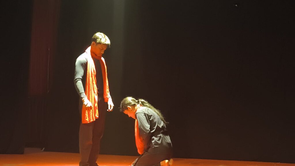 इसके अतिरिक्त मणिपुर से आई दूसरी नाट्य संस्था द्वारा प्रस्तुत “लोइबी नापोम” नाटक में ऊँच-नीच के भेद, सत्ता संघर्ष और सामाजिक टकराव को विस्तार से दिखाया गया। लोइबी नापोम के शांत वातावरण में जब भेदभाव की आग फैलती है, तो राजमहल से लेकर आम जनता तक उसका असर दिखाई देता है। अंततः अतीत की गलतियों को स्वीकार करते हुए पहाड़ और मैदान के लोगों के बीच टूटा रिश्ता फिर से जुड़ता है और मानवीय एकता की जीत होती है।