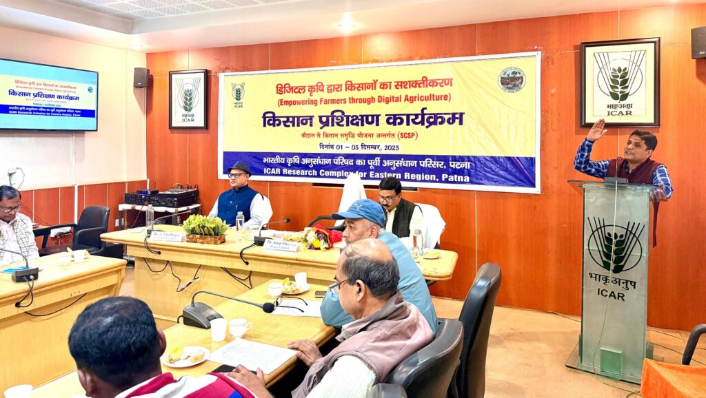 पटना -कार्यालय प्रतिनिधि। भारतीय कृषि अनुसंधान परिषद (आईसीएआर) के पूर्वी अनुसंधान परिसर, पटना में सोमवार को “कौशल से किसान समृद्धि” कार्यक्रम के तहत “डिजिटल कृषि के माध्यम से किसानों का सशक्तिकरण” विषय पर पाँच दिवसीय किसान प्रशिक्षण कार्यक्रम का शुभारंभ किया गया। यह प्रशिक्षण कार्यक्रम अनुसूचित जाति उप योजना के अंतर्गत प्रायोजित है।