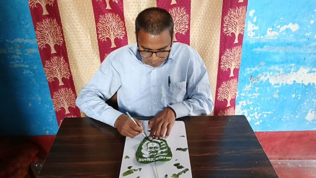 मधुरेंद्र कुमार द्वारा बनाई गई यह विशेष लीफ आर्ट श्रद्धांजलि सोशल मीडिया पर तेजी से साझा की जा रही है, जिसे लोग भावनात्मक सम्मान के रूप में सराह रहे हैं।