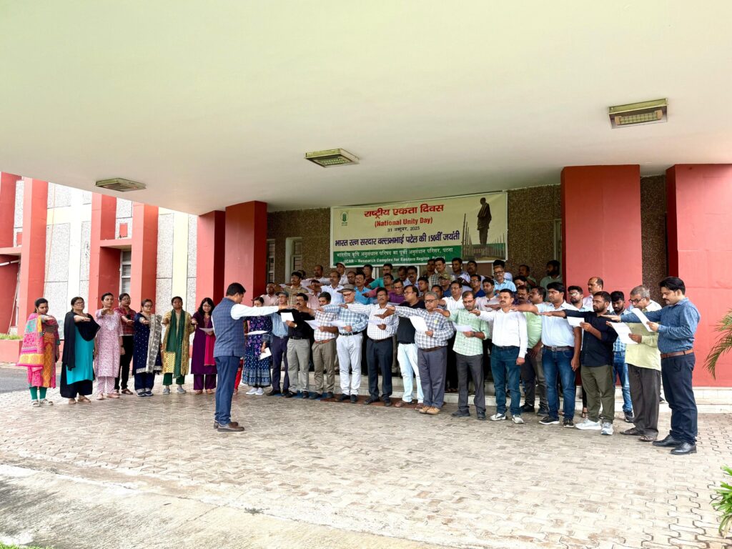 पटना- कार्यालय प्रतिनिधि। भारतीय कृषि अनुसंधान परिषद (आईसीएआर) के पूर्वी अनुसंधान परिसर, पटना में आज लौह पुरुष एवं भारत के प्रथम उपप्रधानमंत्री सरदार वल्लभभाई पटेल की 150वीं जयंती के उपलक्ष्य में राष्ट्रीय एकता दिवस बड़े उत्साह और देशभक्ति की भावना के साथ मनाया गया।