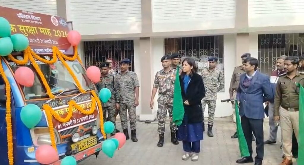 सासाराम (रोहतास) – कार्यालय प्रतिनिधि। सड़क सुरक्षा माह 2026 के अंतर्गत शुक्रवार को जिला पदाधिकारी, रोहतास द्वारा आमजनों को सड़क सुरक्षा के प्रति जागरूक करने के उद्देश्य से समाहरणालय, रोहतास परिसर से सड़क सुरक्षा ध्वनि रथ को हरी झंडी दिखाकर रवाना किया गया। यह ध्वनि रथ जिले के विभिन्न क्षेत्रों में भ्रमण कर लोगों को यातायात नियमों, सुरक्षित ड्राइविंग और सड़क सुरक्षा से संबंधित सावधानियों के प्रति जागरूक करेगा।