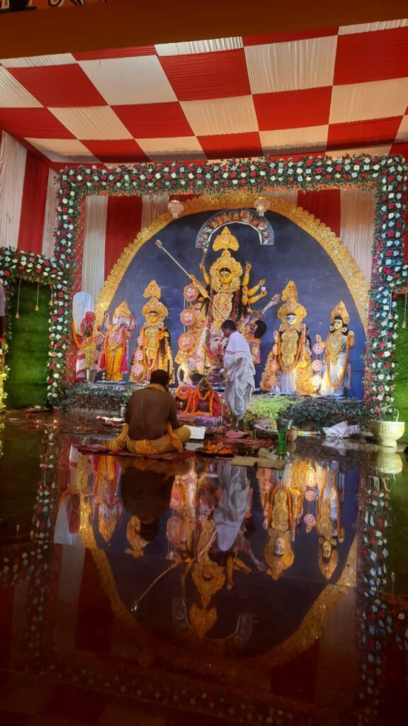 बताया कि पूजा कार्यक्रम का संचालन पश्चिम बंगाल के पुरोहित चंचल राय, दिलीप चक्रवर्ती और देव कुमार बनर्जी के निर्देशन में कराया जा रहा है।